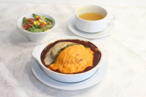 上州牛をふんだんに使ったこだわりのハンバーグ。特製デミグラスソースが美味しさをさらに引き立てます。